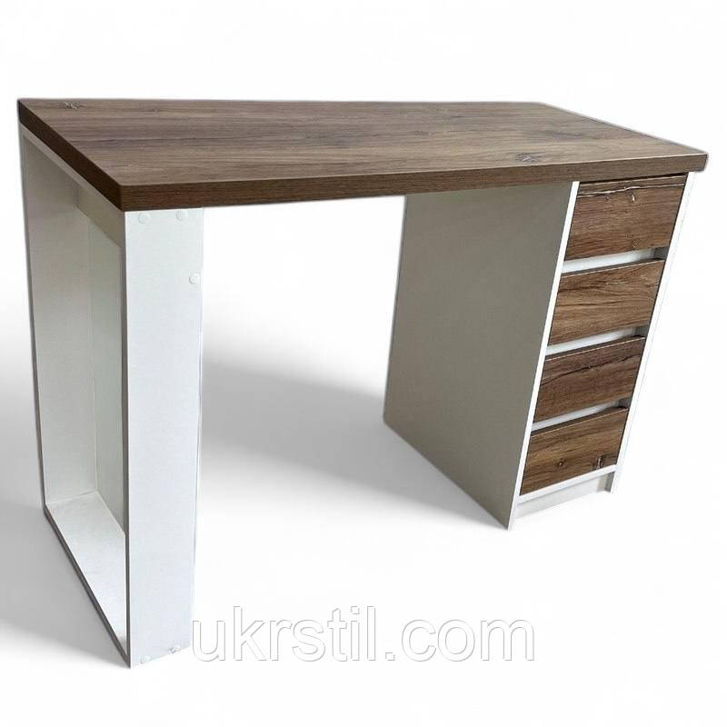 - Стіл та бічна опора (ніжка) виготовлені з високоякісного ДСП, має чотири висувні ящики на телескопічних напрямних.
