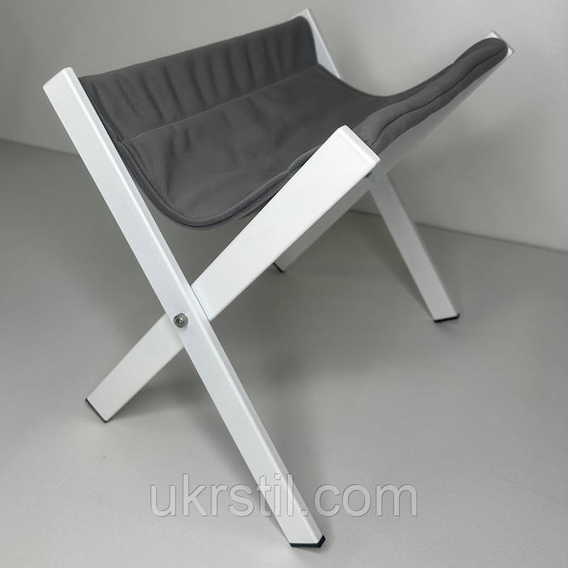 Каркас із металу профілю 30*30, пофарбований білою порошковою фарбою, а сидіння з високоміцної тканини.