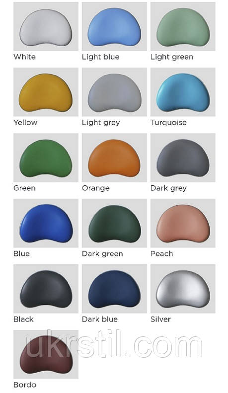 Основа стульчика — хромированное пятилучье с полиуретановыми колесиками, которые обеспечивают бесшумность передвижения. Возможна дополнительная комплектация подножкой.