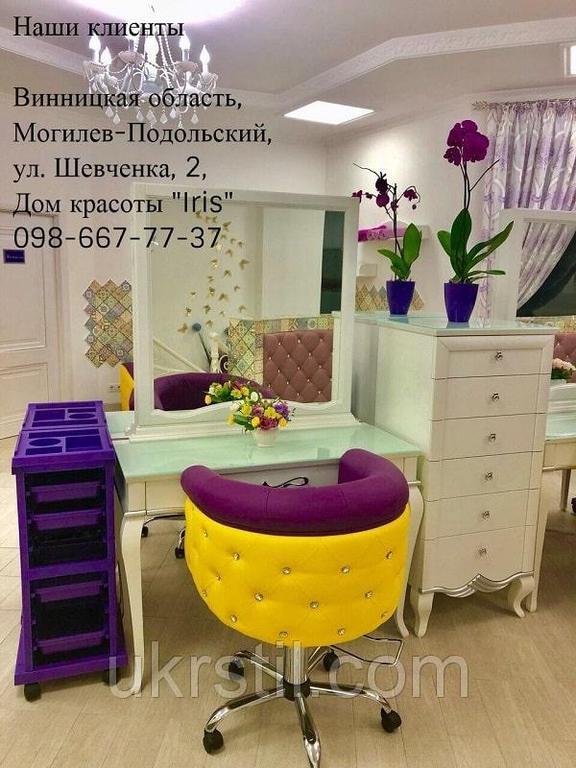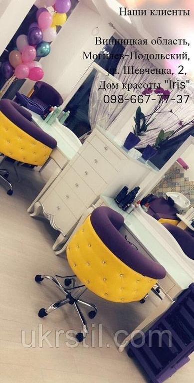 Стульчик мастера Dali, Педикюрное кресло Трон Ice Queen, Парикмахерское кресло Obsession, Маникюрный стол Queen 8